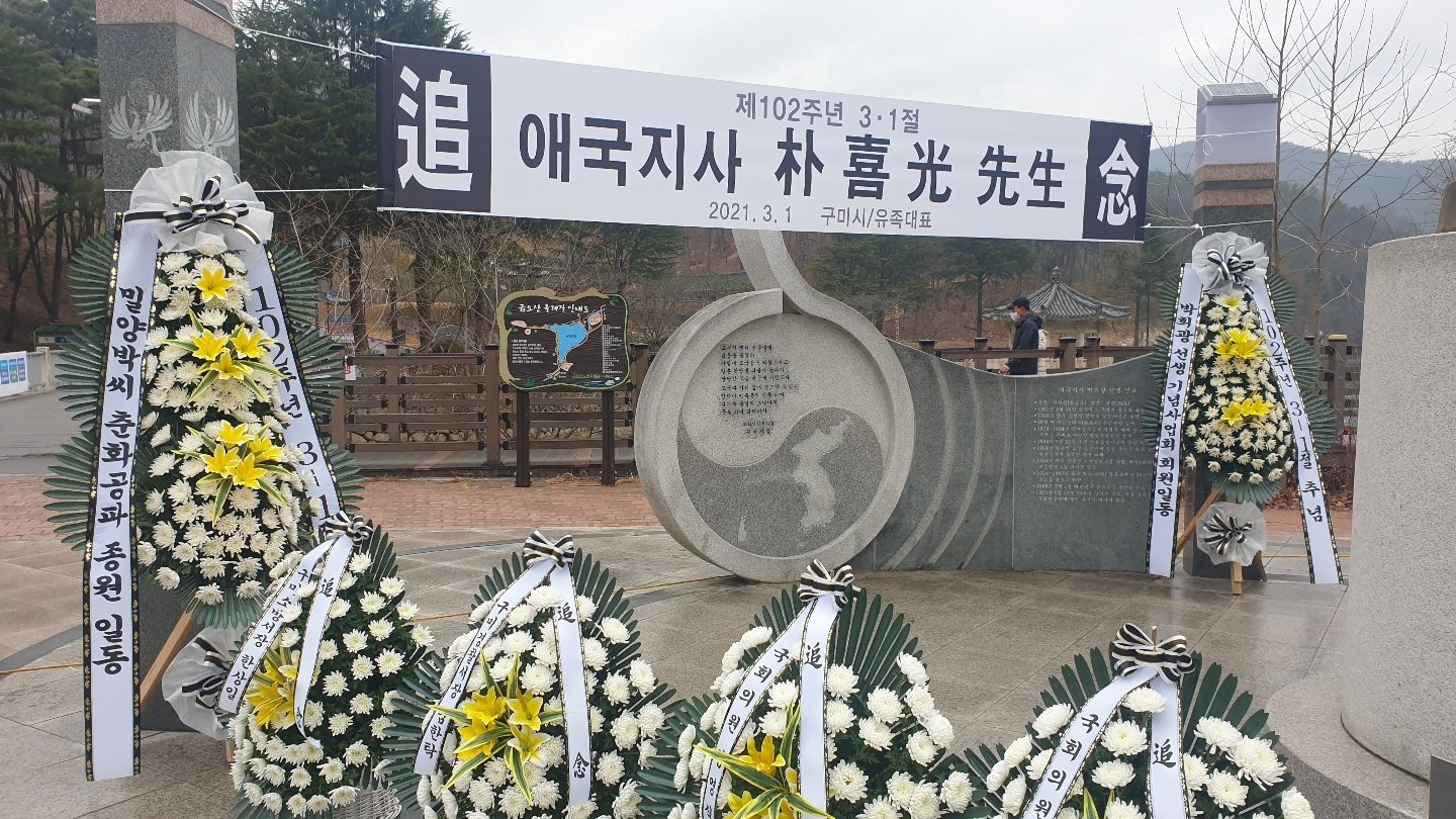 Á¦102ÁÖ³â3-1Àý ±â³ä ¾Ö±¹Áö»ç ¹ÚÈñ±¤ ¼±»ý Ãß³ä, Àå¼¼¿ë ±¸¹Ì½ÃÀå, ±èÀç»ó ÀÇȸ ÀÇÀå¿Ü ÀÇ¿ø, ±¸ÀÚ±Ù ±¹È¸ÀÇ¿ø´Ô, ±è¿µ½Ä ±¹È¸ ÀÇ¿ø À¯°ü±â°ü ´ÜüÀå´Ô, ±¹°¡º¸ÈÆ ´ÜüÀå´Ô, °æ»óºÏµµ ÀÇ¿ø, ½Ã °£ºÎ°ø¹«¿ø, ¹ÚÈñ±¤ ¼±»ý ±â³ä»ç¾÷ȸ ÀÓ¿ø, ¹Ð¾ç¹Ú¾¾ °æÁÖ°øÆÄÁ¾Ä£ ȸÀå ¿©·¯ºÐÀ» ÇÑÀÚ¸®¿¡ ¸ð½Ã°í, Ãß³ä Âü¹è½Ä °ÅÇàÇÕ´Ï´Ù,