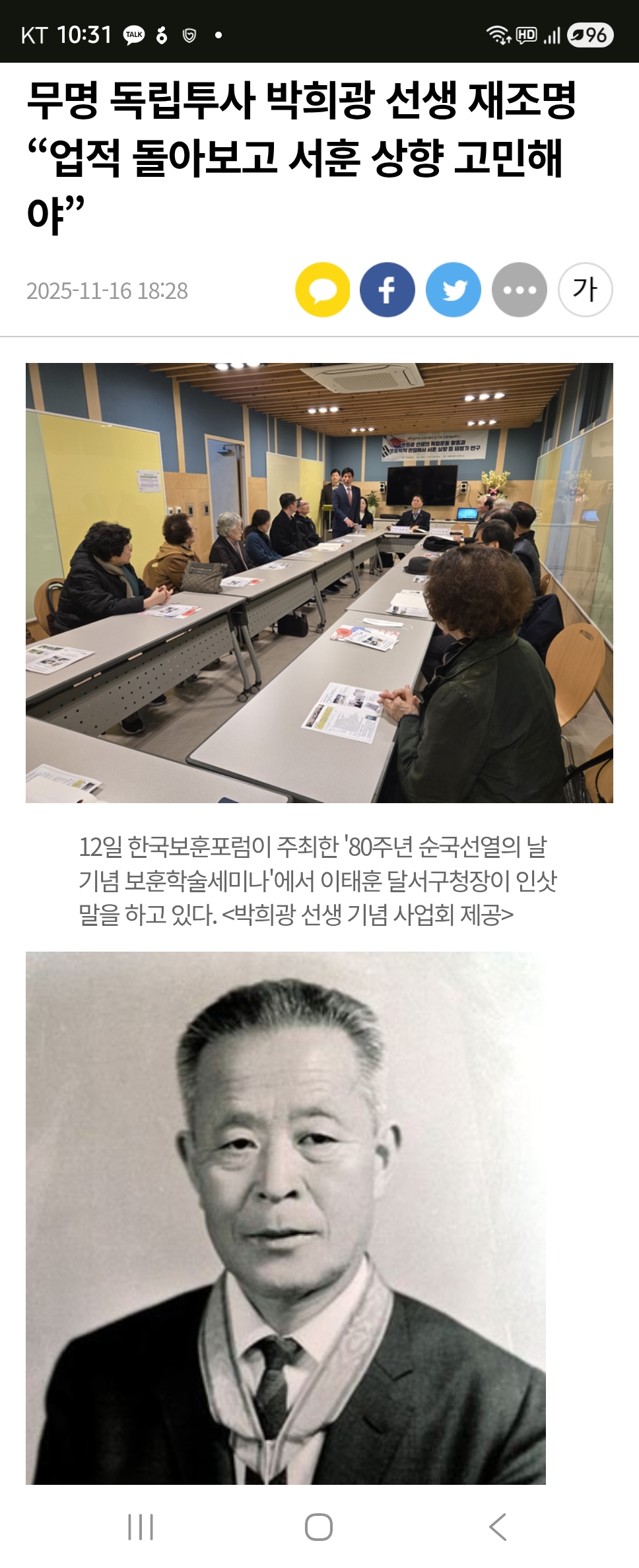 ¹«¸í ¾Ö±¹Áö»ç ¹ÚÈñ±¤¼±»ý º¸ÈÆÇÐÀû¼¼¹Ì³ª[¿µ³²ÀϺ¸ 11.18]